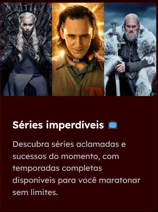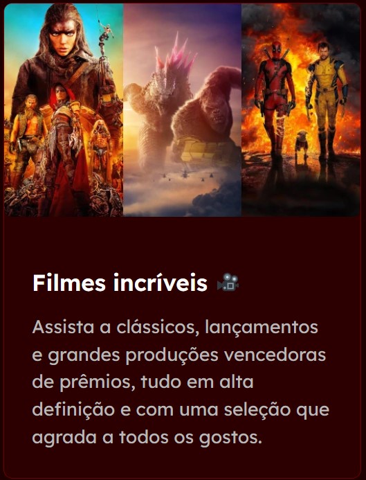 Descubra os grandes sucessos do cinema, lançamentos exclusivos e as séries mais assistidas do momento.